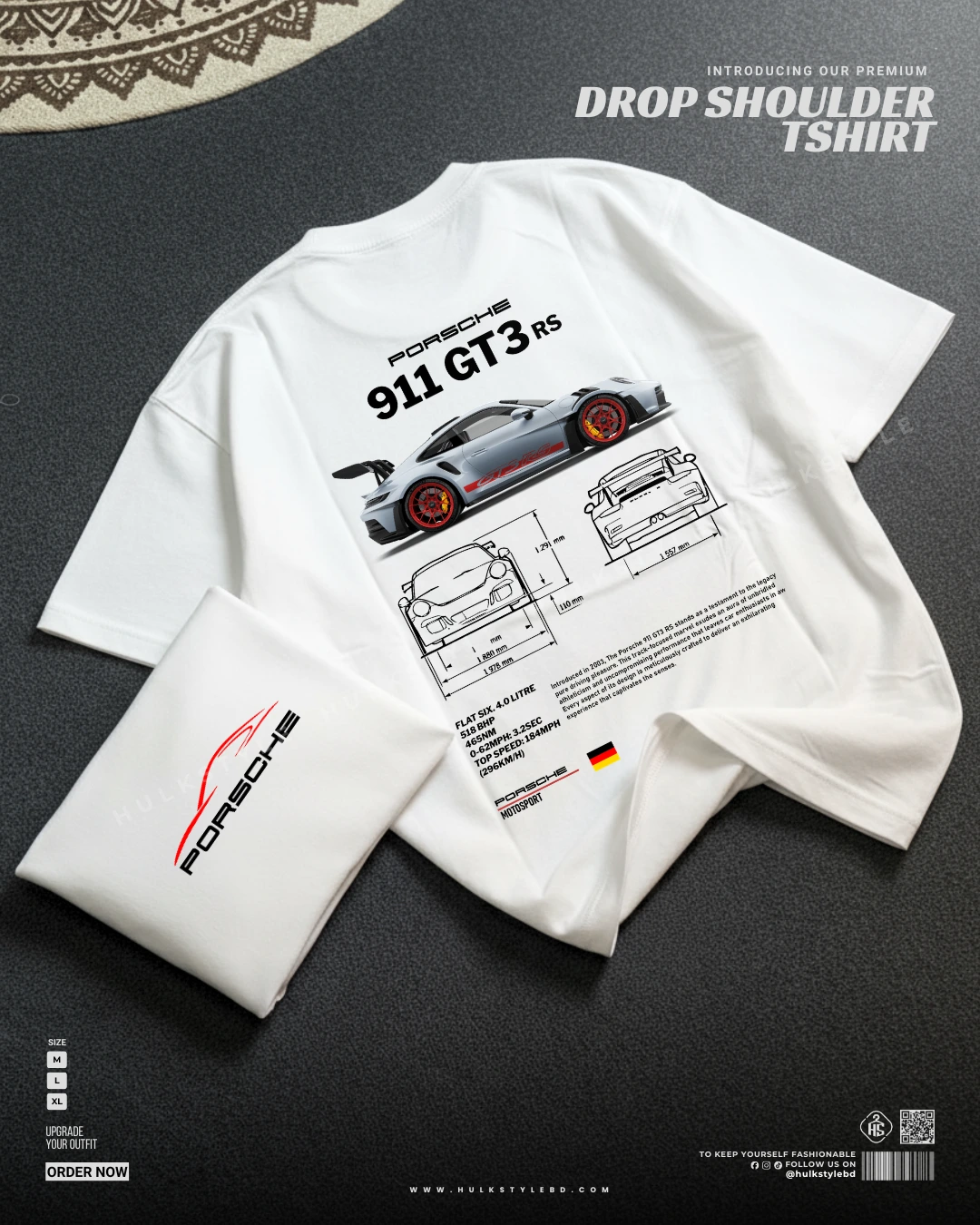 Drop shoulder tshirt for men - 911 Porsche White Premium Oversized streetwear | Hulktylebd