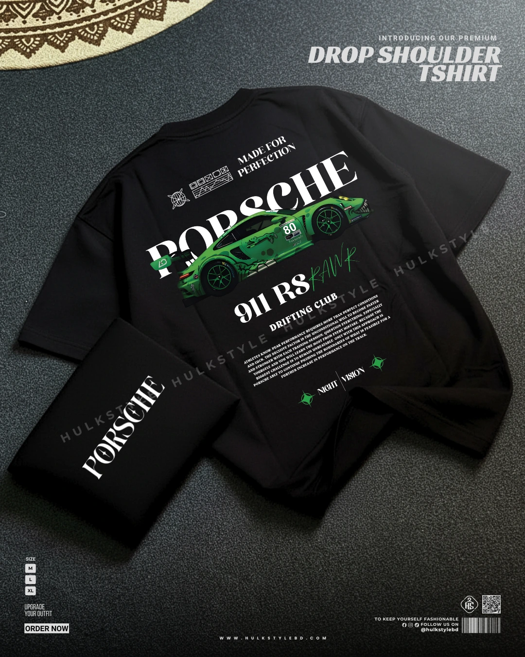 Drop shoulder tshirt for men – Green Porsche Black Premium Oversized streetwear | Hulktylebd