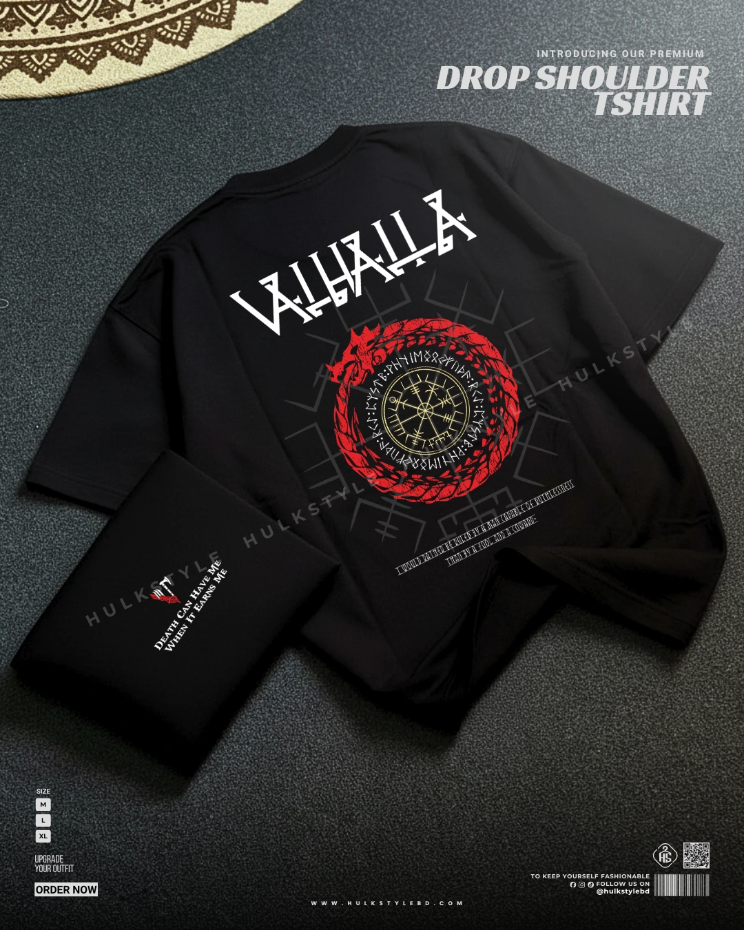 Drop shoulder tshirt for men - Valhalla Premium Oversized streetwear | Hulktylebd