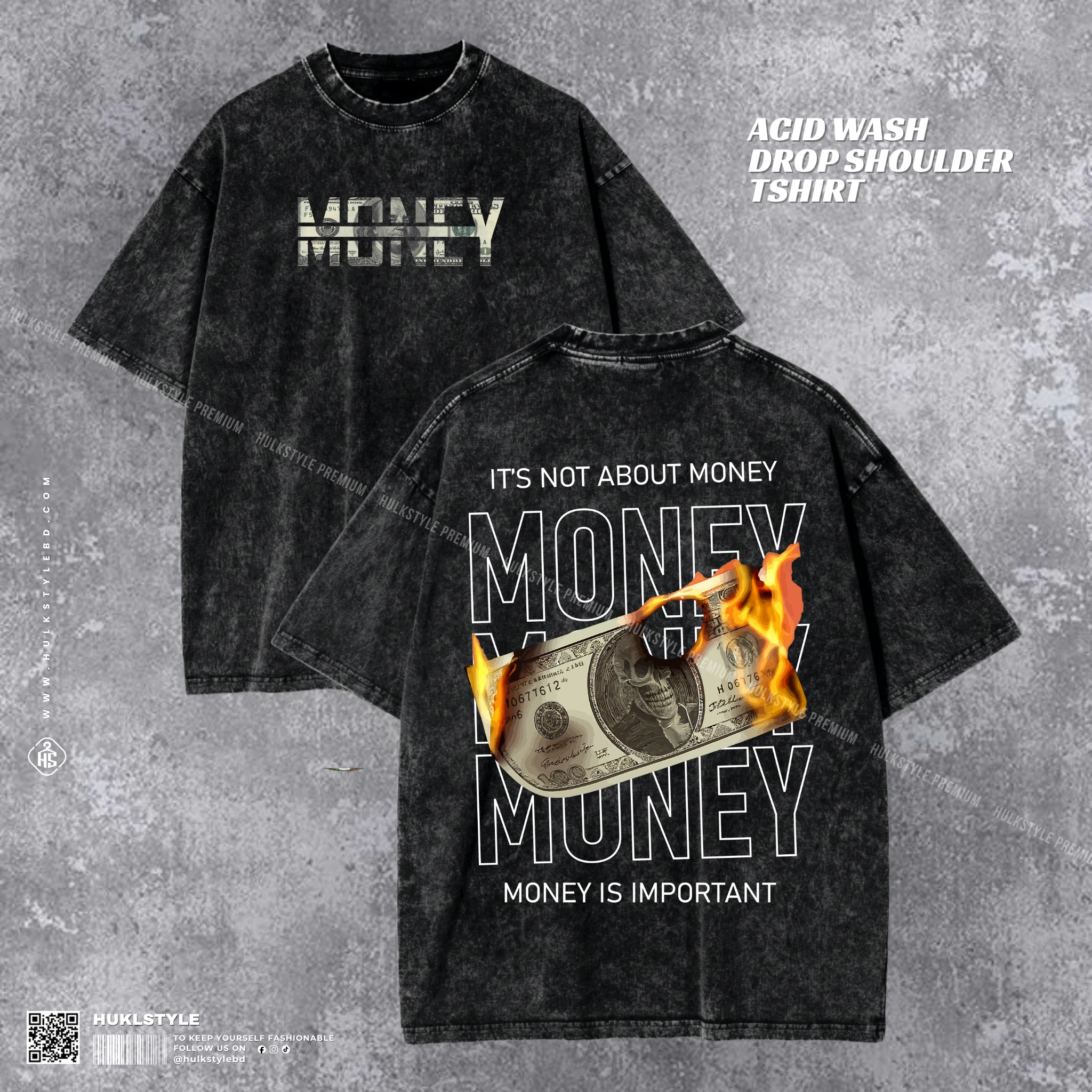 Money Is Important Acid Wash T-shirt | Hustle Culture Drop Shoulder | HulkstyleBD