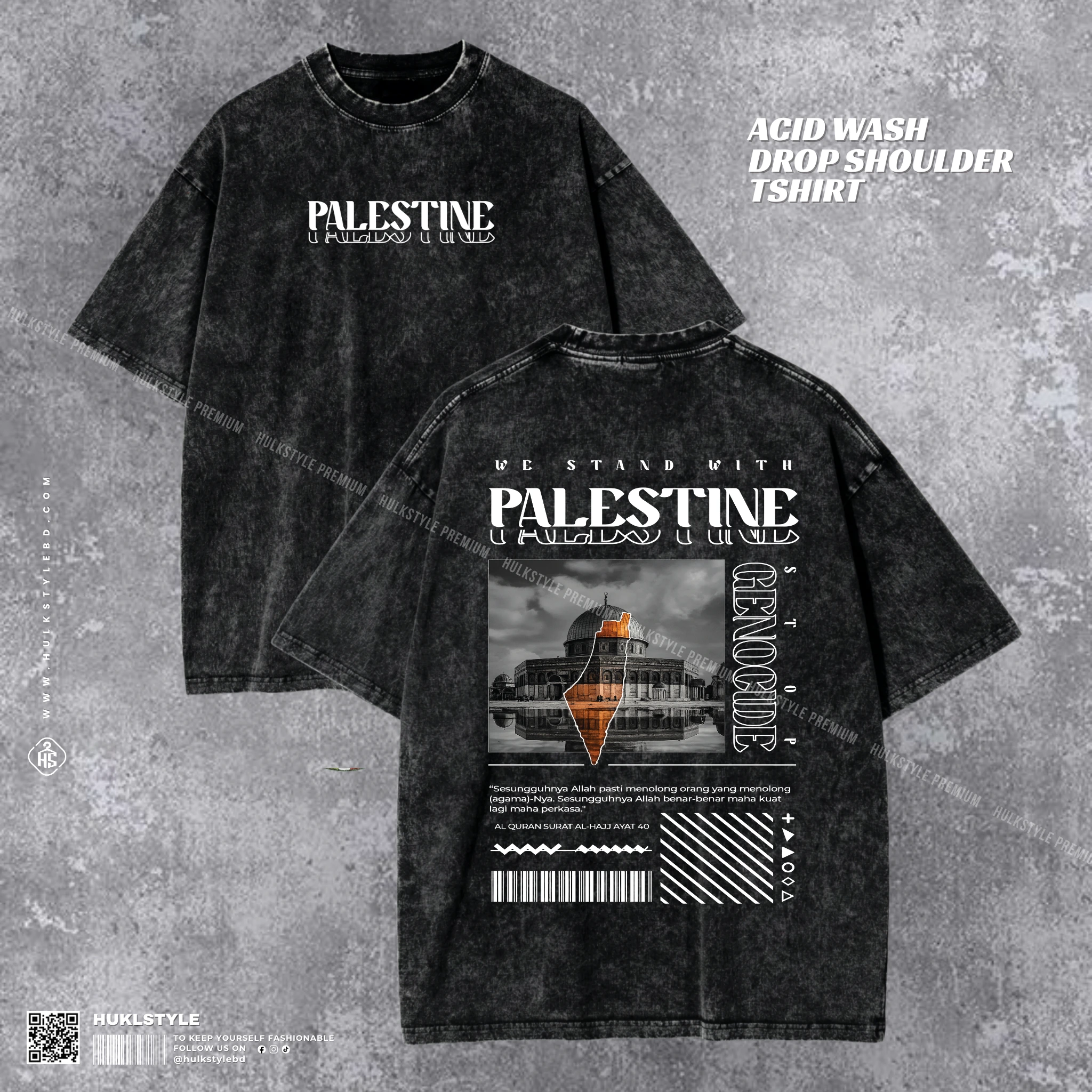 Palestine Acid Wash T-shirt | Drop Shoulder Men's Tee | HulkstyleBD