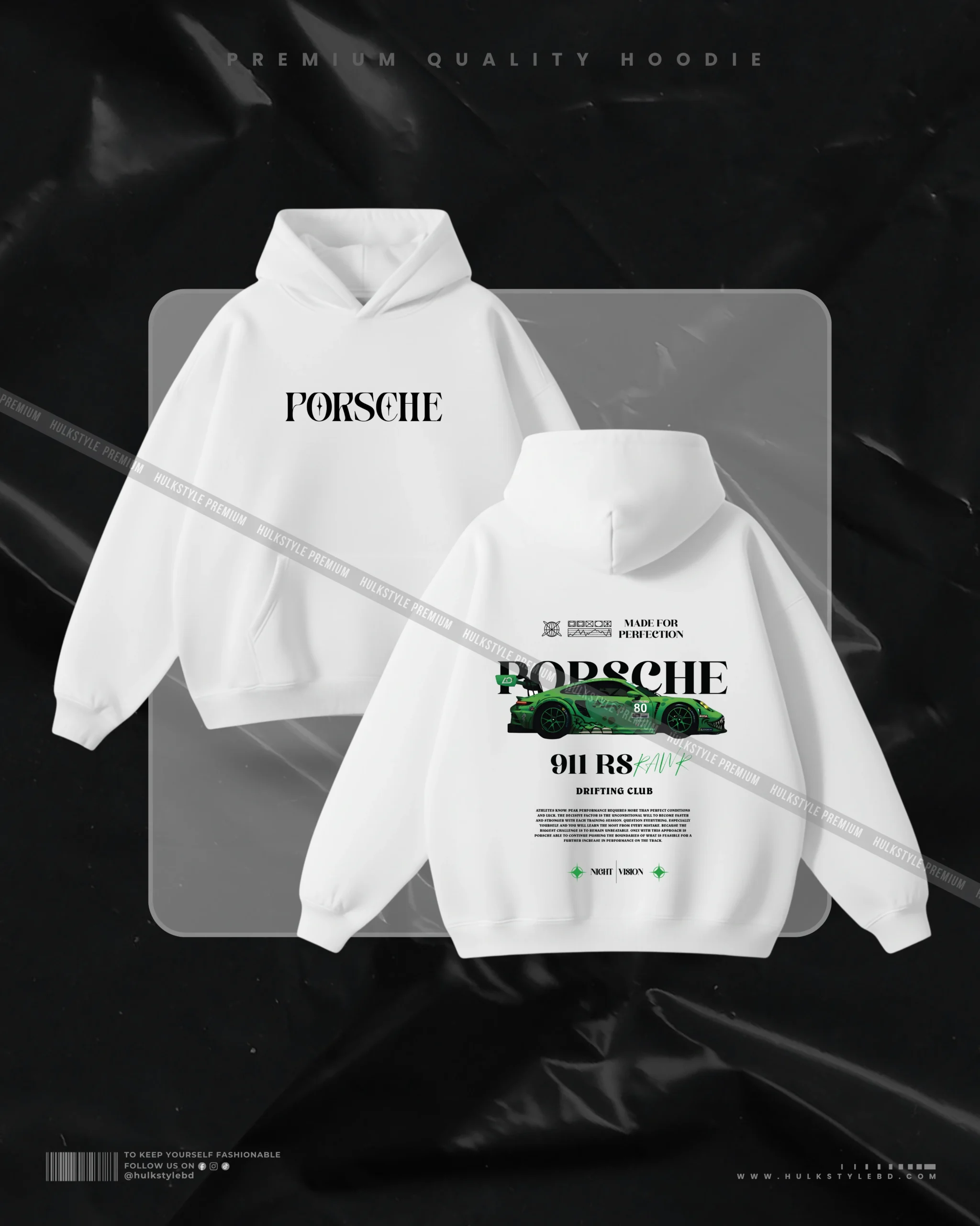 Hulkstyle White Hoodie Porsche Green 911 RS