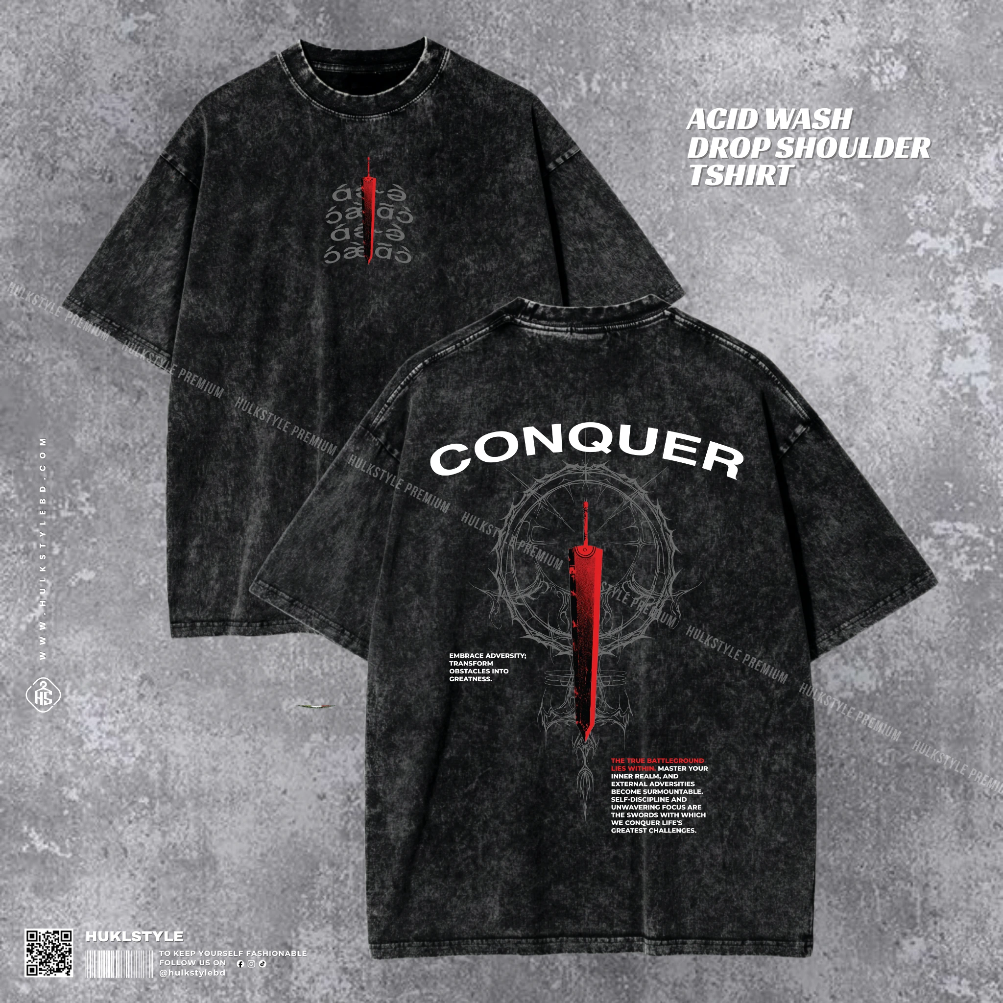 Be the first to review “Conquer Acid Wash T-shirt | Motivational Drop Shoulder Tee | HulkstyleBD” Cancel reply