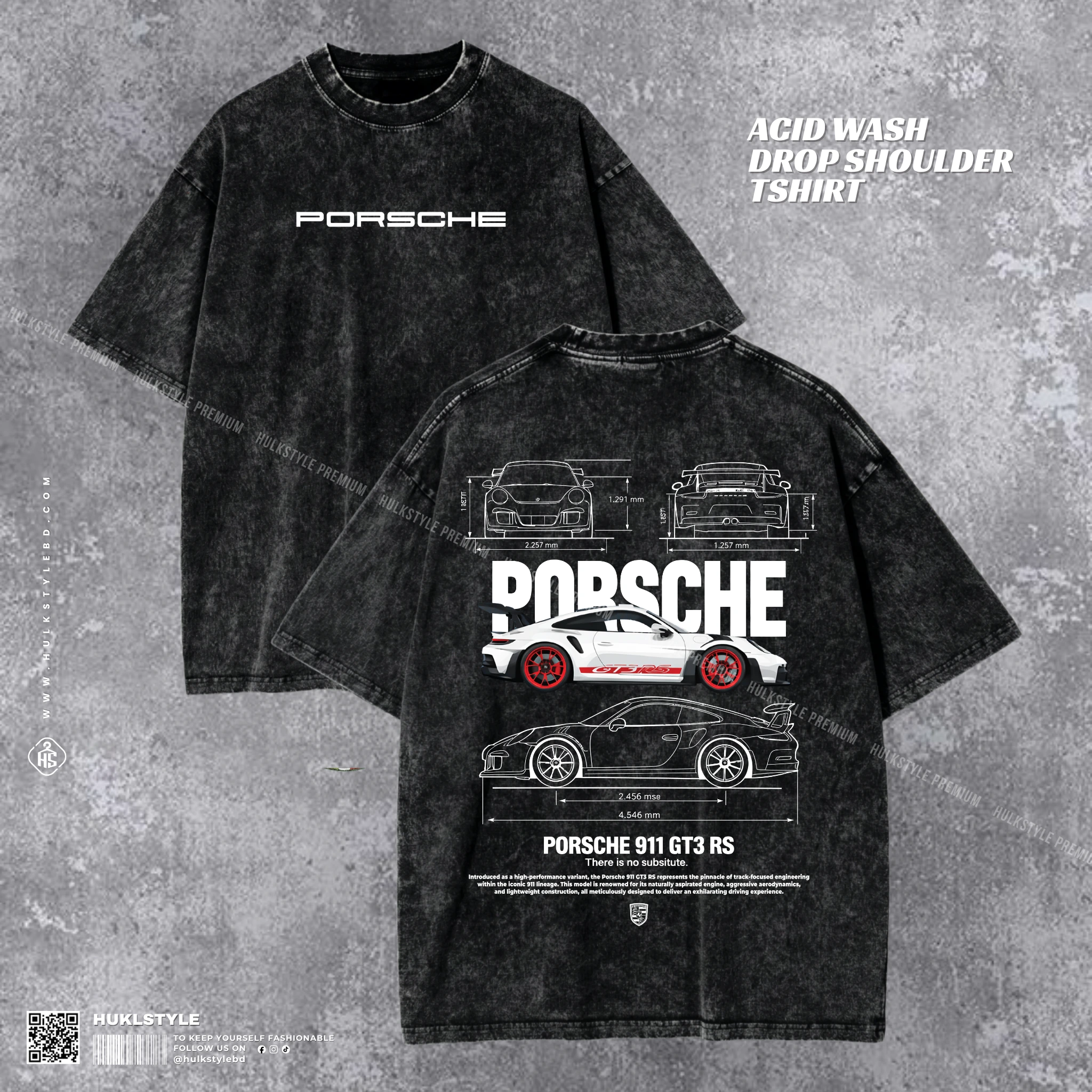 Porsche White 911 Acid Wash T-shirt | Vintage 911 Drop Shoulder | HulkstyleBD