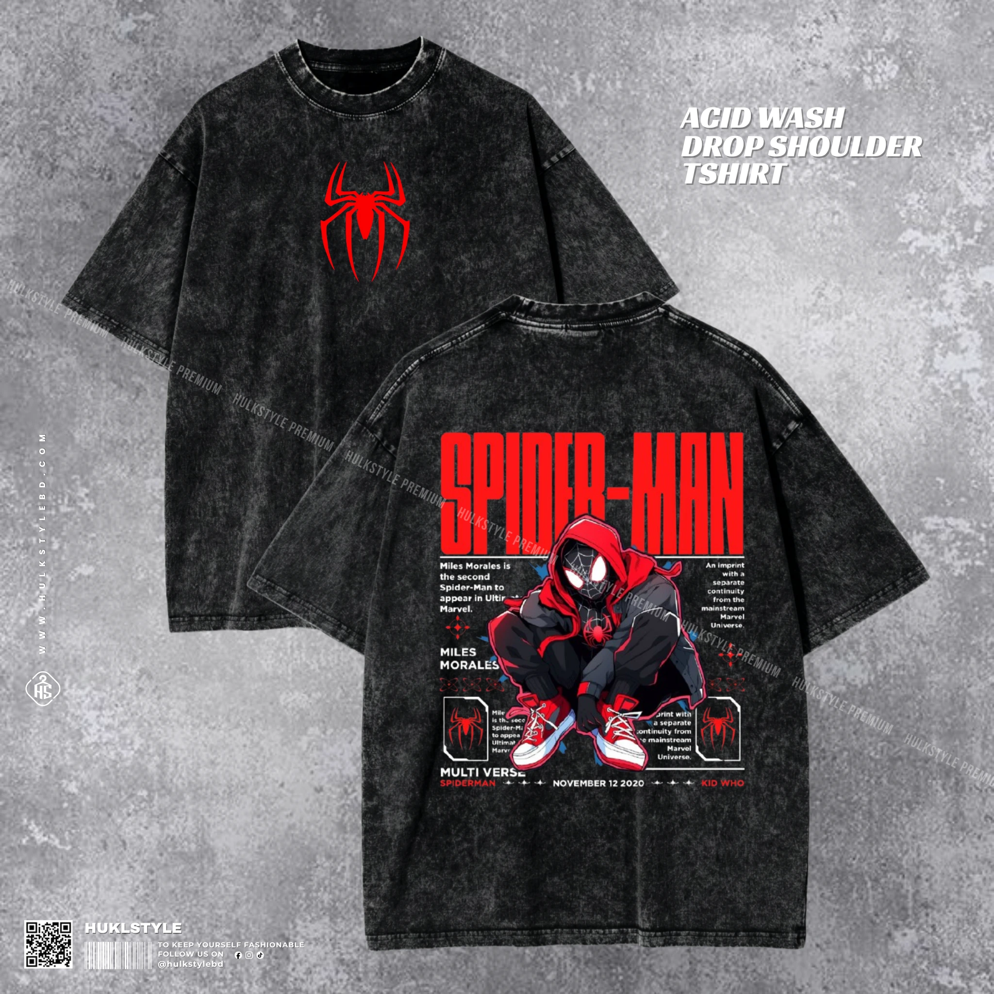 Spider-Man Acid Wash T-shirt | Drop Shoulder Men’s Tee | Hulkstylebd